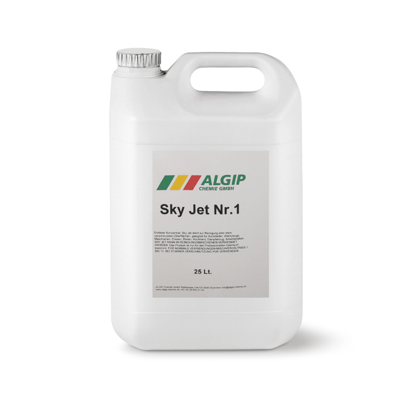 Entfetter Konzentrat. Sky Jet dient zur Reinigung aller stark verschmutzten Oberflächen. Geeignet für Kunstlederpolster, Werkzeuge Maschinen, Fliesen, Böden, Kochherd Dampfabzug, Arbeitsplatten. SKY JET KANN IN BODEN REINIGUNGSMASCHIENEN VERWENDET WERDEN. Das Produkt ist nur für den professionellen Gebrauch bestimmt. FÜR NORMALE VERWENDUNGEN MISCHVERHÄLTNISS 1 BIS 20 FÜR SCHWIERIGE VERWENDUNGEN 1 BIS 10 BEI STARKER VERSCHMUTZUNG PUR VERWENDEN.